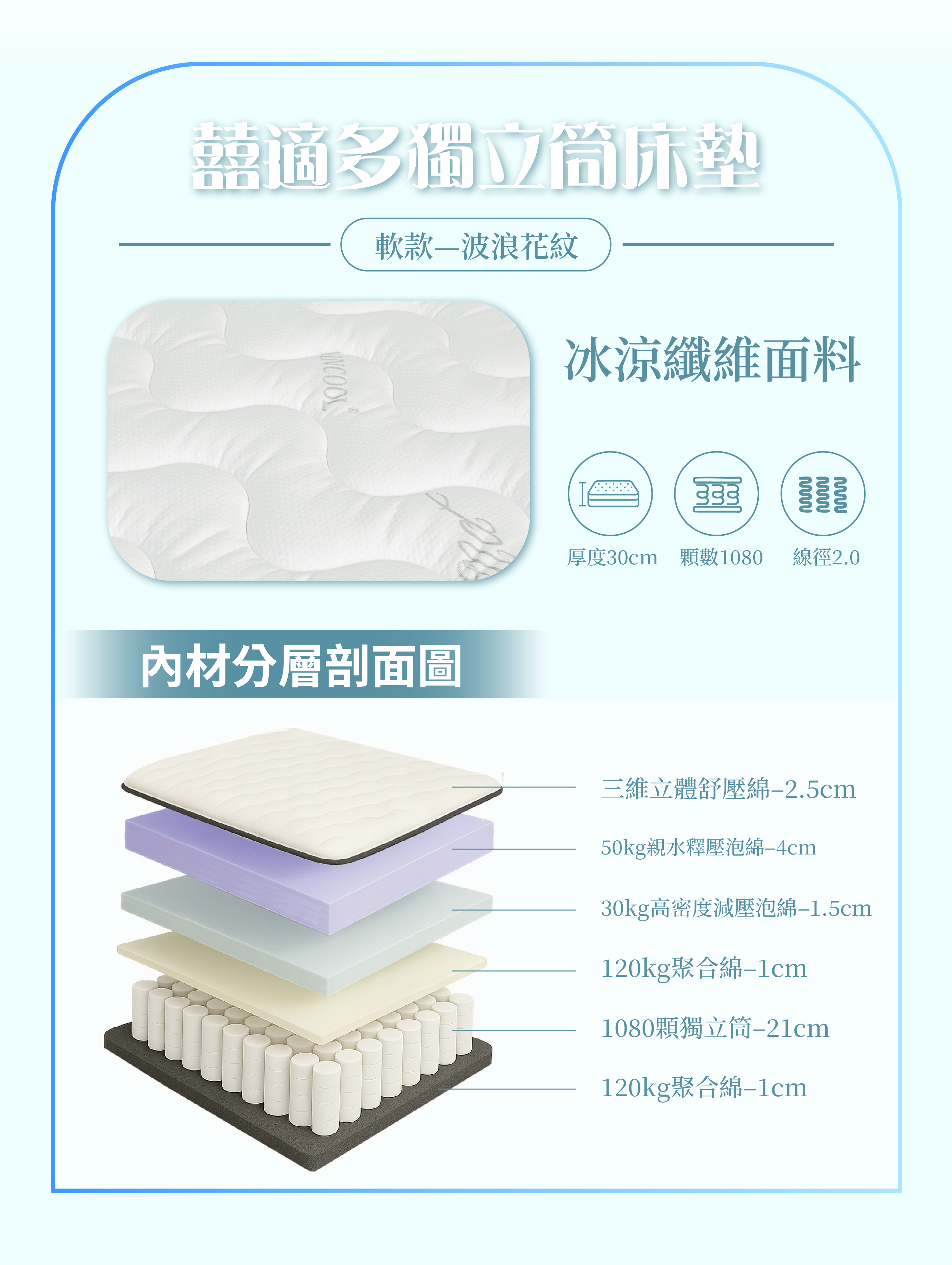 瞬間降溫,四季舒適—記憶+高彈泡綿