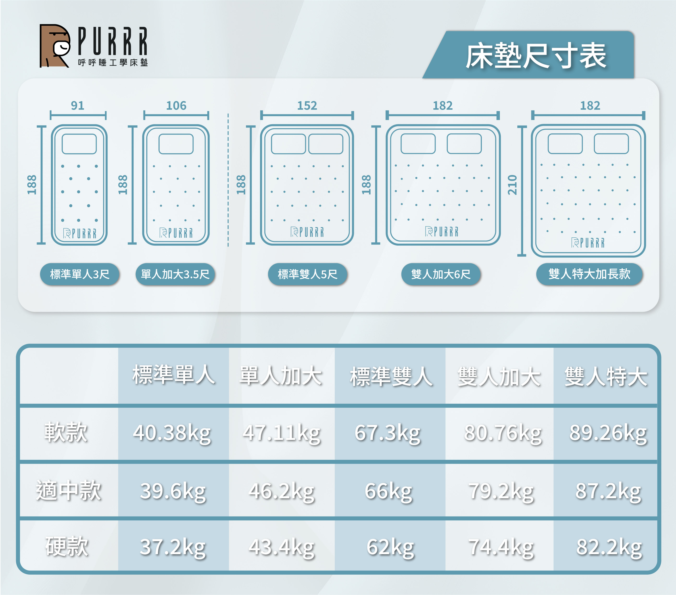 床墊尺寸表
